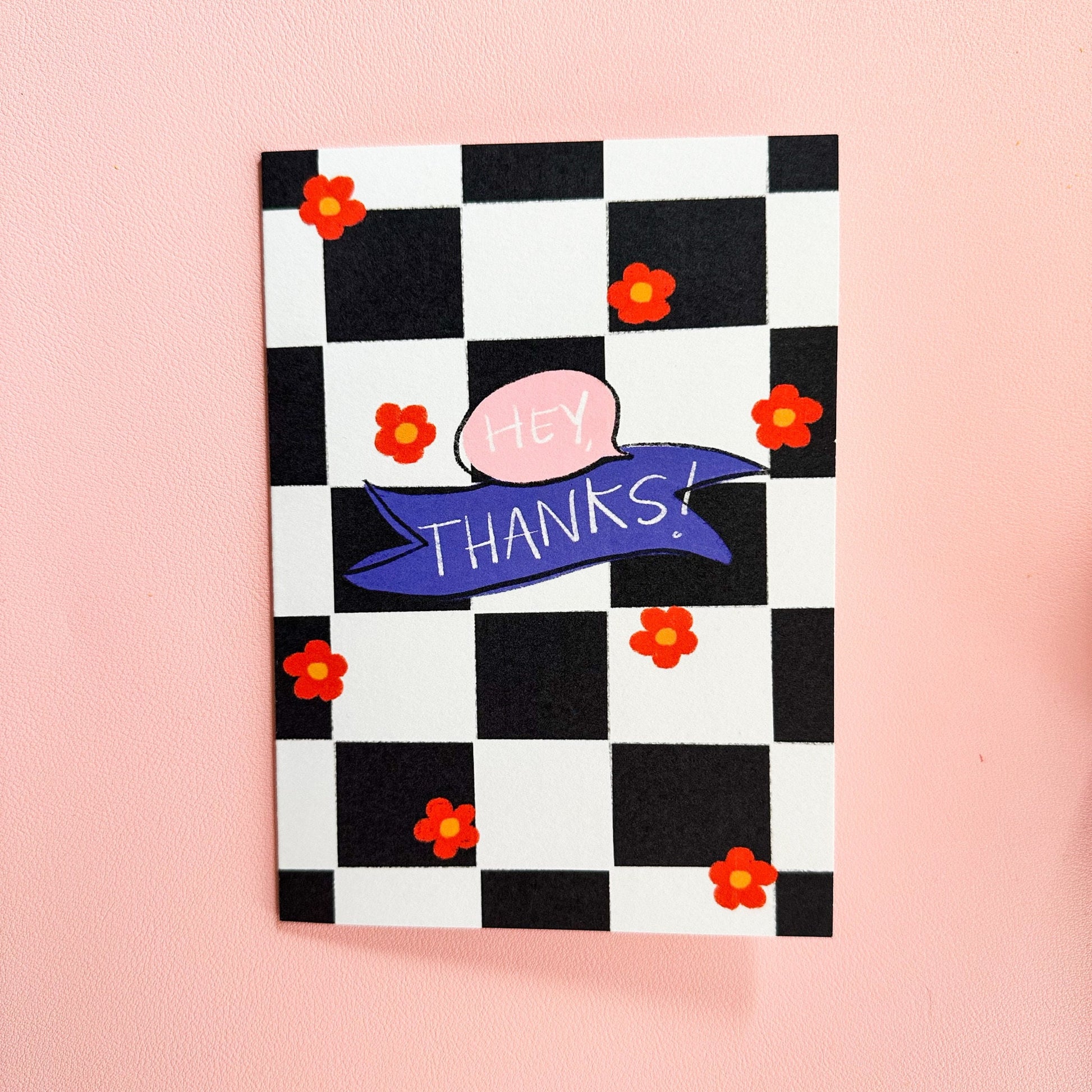 Let a friend know how much they're appreciated with our Hey Thanks friendship card! The blank inside leaves room for a heartfelt message. Cool, funky, and fun - this card will definitely bring a smile to their face.