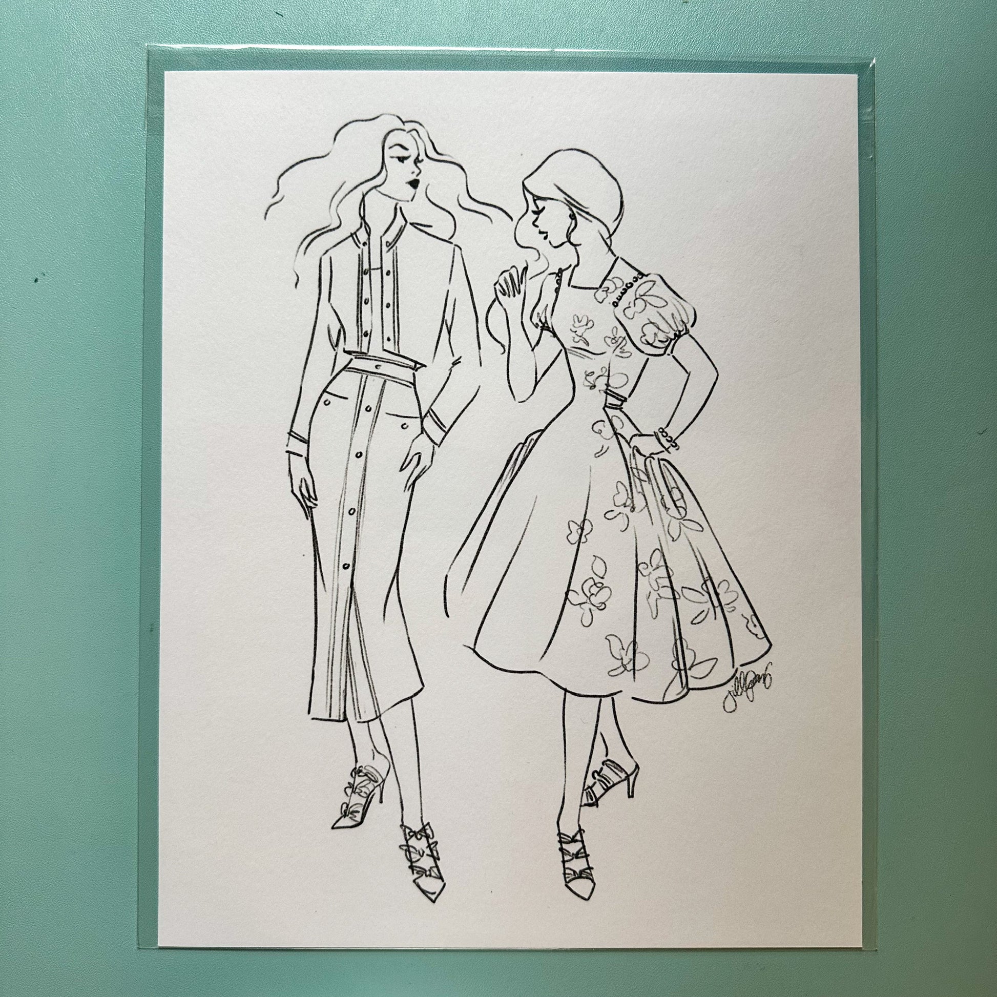 Add a feminine touch to your walls with our hand-drawn fashion illustration art print. This unique print offers a playful glimpse into Jill's fashion background.