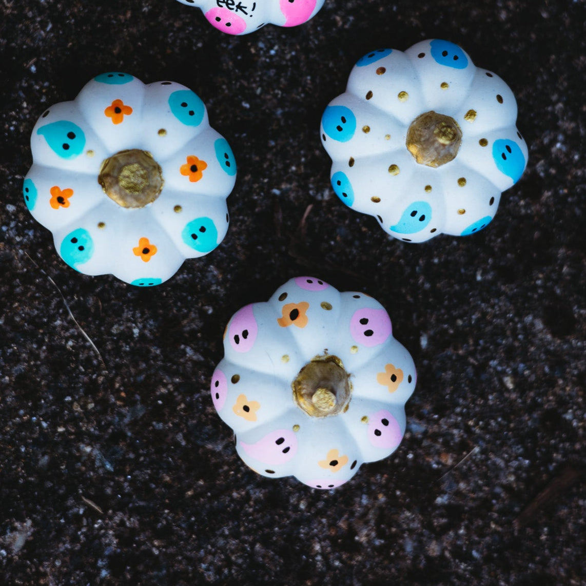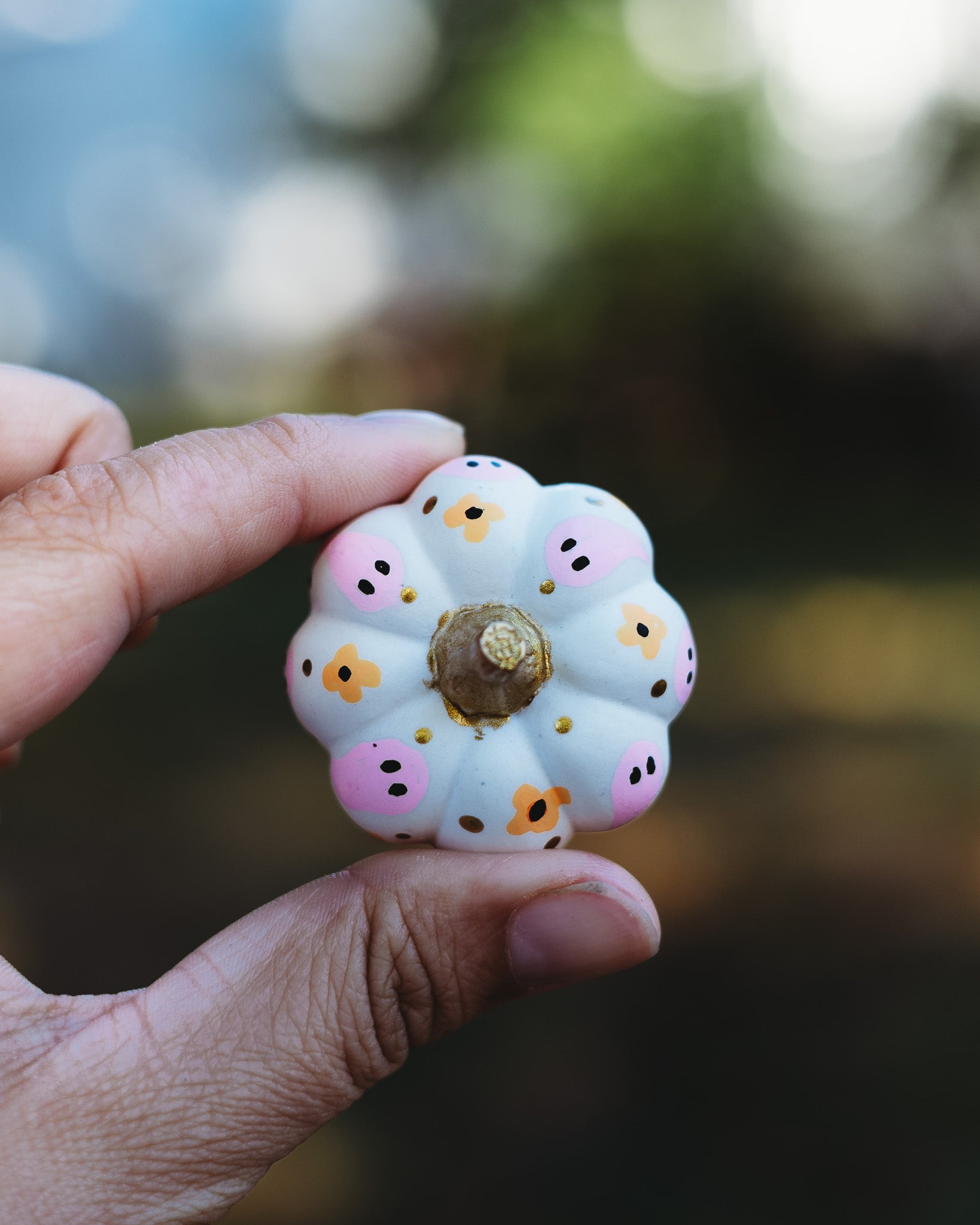 Bring some fall whimsy into your space with a one-of-a-kind mini hand-painted resin pumpkin! Mini pumpkins measure a delightful 1.75" x 1.75" x 1.5"