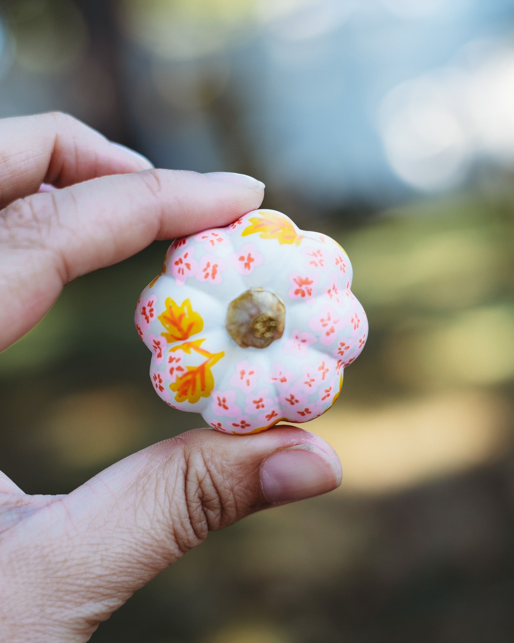 Bring some fall whimsy into your space with a one-of-a-kind mini hand-painted resin pumpkin! Mini pumpkins measure a delightful 1.75" x 1.75" x 1.5"