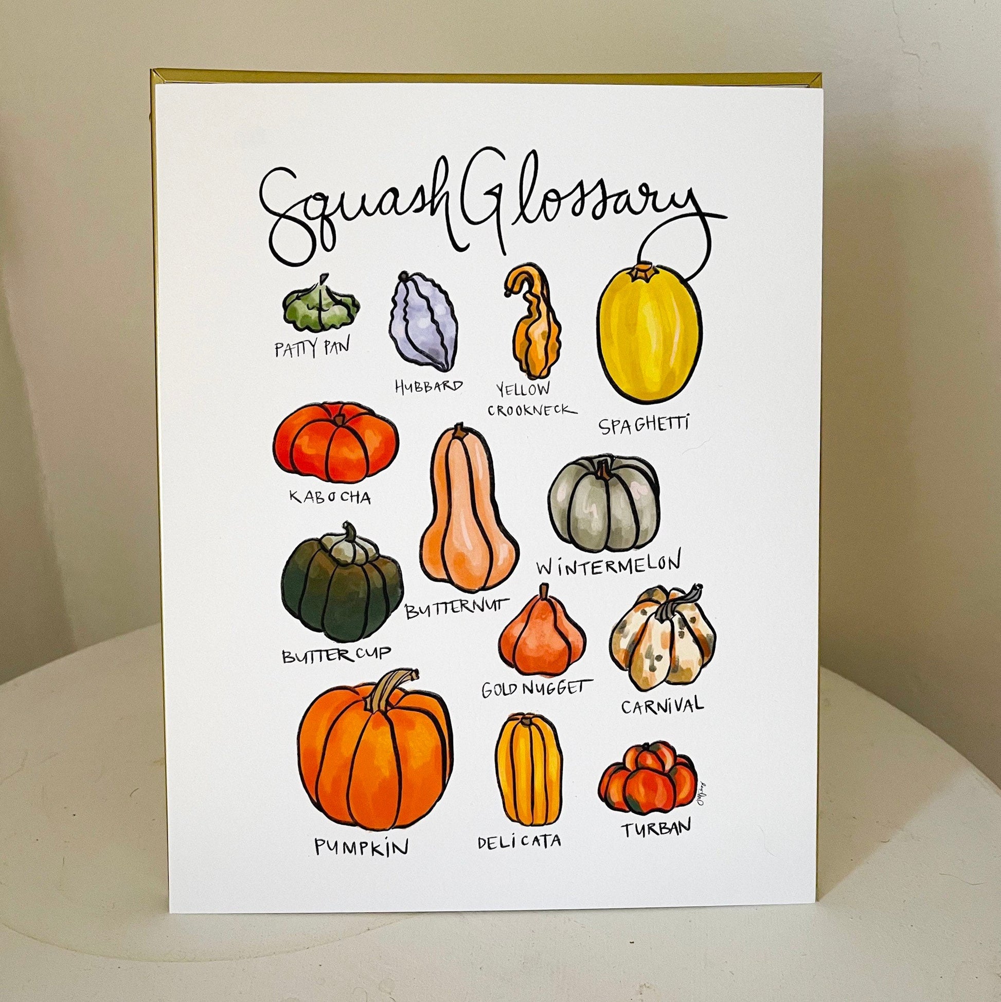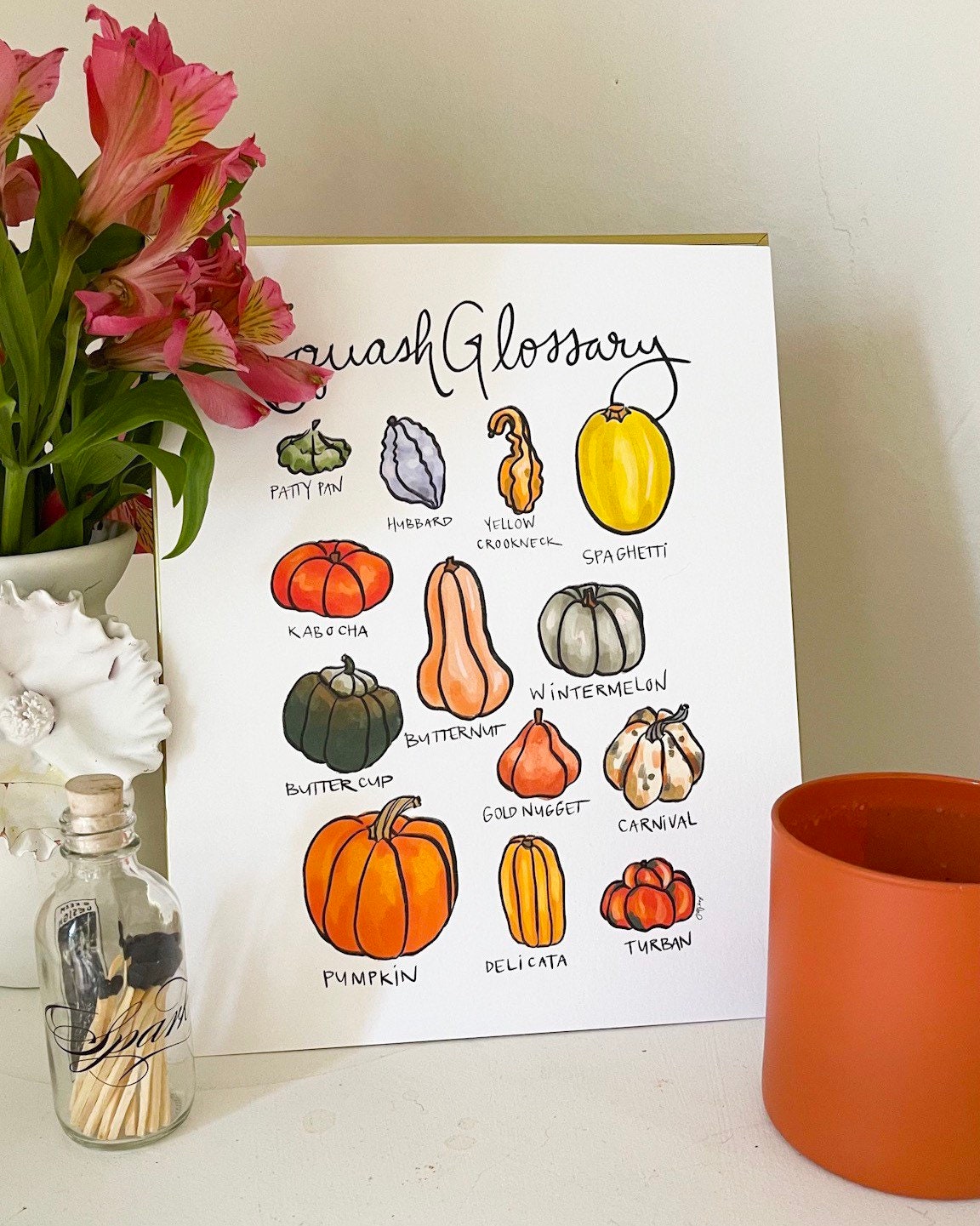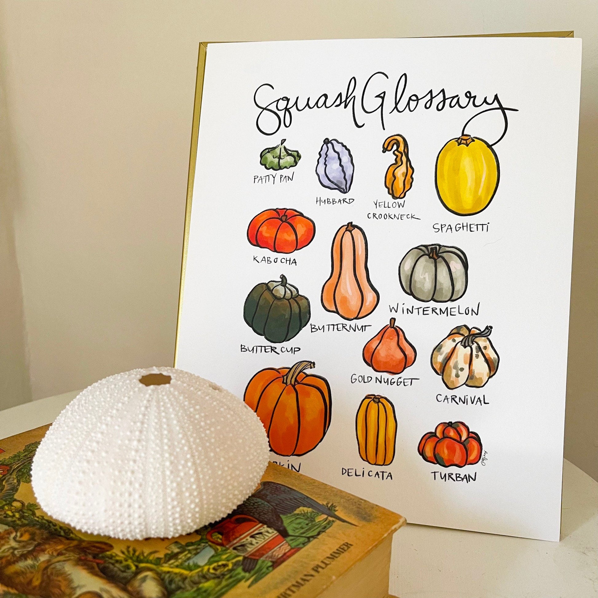 Satisfy your cravings for both art and education with our Squash Glossary Print. This colorful print features an illustrated squash glossary, adding a touch of playful sophistication to any kitchen. Embrace the cottage core aesthetic and elevate your kitchen decor.